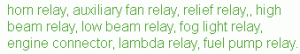 Fuse Panel Layout Diagram Parts: fuel pump relay, horn relay, high beam relay, low beam relay, auxiliary fan relay, relief relay, fog light relay, engine connector, lambda relay.