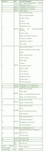 Fuse Panel Layout Diagram Parts: Lights:Turn/Hazard Warning, Wiper/Washer, Active Check Control,Brake Lining Warning, Cruise Control, Fuel Delivery/Evaporative Control, Idle Speed Control, Headlights, Cigar Lighters, Active Check Control, Auto Charging Flaslight., Gauges, Idle Speed Control, Interior Lights, Power Mirros, Power Windows, Seatbelt Warning, Speedometer, Warning Indicators, Dash Lights, Lights : Front Park/Tail/Underhood, Lights : Rear Marker/License, Auxiliary Fan, Vacuum Pump, Power Window Circuit Breaker, Power Windows, Radio, Auxiliary Fan, Trunk Light, Active Check Control, Dash Lights, Radio/Power Antenna, Radio/Power Antenna, Stoplights/Cruise Control, Warning Indicators, Rear Defogger/Sunroof, Automatic Heated Air Conditioner, Interior Lights, Lights: Turn/Hazard Warning, On Board Computer, Backup Lights/Transmission Range, Lights, Central Locking, Gauges, Glove Box Light, Heated Door Lock, Ignition Key Warning/Seatbelt Warning, Active Check Control, Front Park/Tail, Active Check Control, Horns.