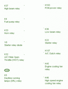 Fuse Panel Layout Diagram Parts: main relay, wiper control unit, unloader relay, normal speed relay, fuses, horn relay, fuel pump relay, high beam relay, low beam relay, fog light relay.