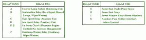 Fuse Panel Layout Diagram Parts: exterior lamp, combination relay, turn signal, hazard lamp, wiper, washer, high speed relay, low speed relay, auxiliary fan, control air injection management, headlamp waher relay, power seat diode, power seat relay, power window relay, auxiliary fan holder.