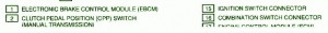 Fuse Panel Layout Diagram Parts: ignition switch connector, combination switch connector, electronic brake control module, clutch pedal positio.