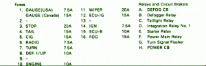1993 Lexus ES250 Interior Dash Fuse Box Map