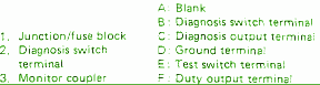 Fuse Panel Layout Diagram Parts: diagnosis switch terminal, monitor coupler, blank,diagnosis switch, terminal, ground terminal, switch terminal, duty output terminal, junction fuse block