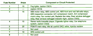 1998 Acura Legend Armaturenbrett Sicherungskasten Karte