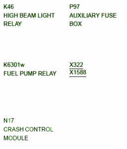1998 BMW Z3 Roadster Engine Side Fuse Box Diagram 1998 BMW Z3 Roadster Engine Side Fuse Box Diagram 1998 BMW Z3 Roadster Engine Side Fuse Box Map Fuse Panel Layout Diagram Parts: crash control module, fuel pump relay, auxiliary fuse box,. high beam light relay.