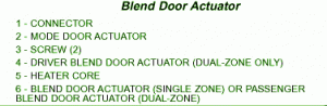Fuse Panel Layout Diagram Parts: actuator single zone, passenger blend door actuator, driver blend door actuator, connector, mode door actuator, screw, heated core.