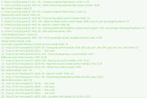 Fuse Panel Layout Diagram Parts: brand speaker relay, front wiper on/off, wiper high/low relay, starter motor relay, auto shut down relay, fog lamp relay, storage, defogger relay, blower motor relay, accessory relay, fuel pump relay, headlamp washer relay, park lamp relay, horn relay, A/C compressor clutch relay, blower motor relay, transmission control relay.