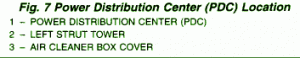 1999 Chrysler Cruiser Underhood Fuse Box Diagram 1999 Chrysler Cruiser Underhood Fuse Box Diagram 1999 Chrysler Cruiser Underhood Fuse Box Map Fuse Panel Layout Diagram Parts: left strut tower, power distribution center, air cleaner box cover.