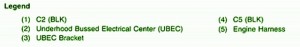 1999 GMC 2500seira 4×4 6.0 Underhood Fuse Box Diagram 1999 GMC 2500seira 4×4 6.0 Underhood Fuse Box Diagram 1999 GMC 2500seira 4×4 6.0 Underhood Fuse Box Map Fuse Panel Layout Diagram Parts: underhood bussed electrical center, UBEC bracket, engine harness.