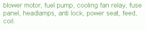 Fuse Panel Layout Diagram Parts: power seat, feed, coil, fuse panel, headlamps, anti lock, blower motor, fuel pump, cooling fan relay.