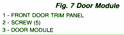 Fuse Panel Layout Diagram Parts: front door trim panel, screw, door modul.