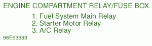 Fuse Panel Layout Diagram Parts: A/C relay, fuel system main relay, engine compartment relay, starter motor relay,