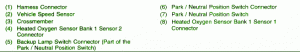 Fuse Panel Layout Diagram Parts: window speed sensor, cross member, heater oxygen sensor, position switch connector, harness connector, back up lamp switch, neutral position switc.