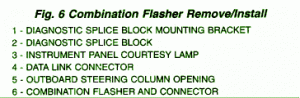 Fuse Panel Layout Diagram Parts: combination flasher and connector, data link connector, diagnostic splice block mounting bracket, instrument panel courtesy lamp, outboard steering column opening.