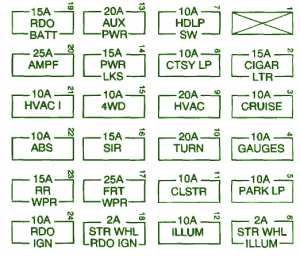 2003 Chevrolet Avalance Main Engine Fuse Box Map