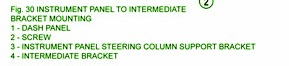 Fuse Panel Layout Diagram Parts: steering column support bracket, intermediate bracket, bracket mounting, dash panel, screw, instrument panel.