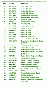 Fuse Panel Layout Diagram Parts: ignition coil, speed control power supply, auto shutdown relay, injector, power ground, ignition switch, knock sensor signal, engine coolant, oxygen sensor, crank position sensor, throttle position sensor, sensor signal.