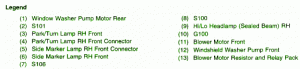 Fuse Panel Layout Diagram Parts: blower motor resistor, window washer pump motor relay, turn lamp, park lamp, side marker lamp, headlamp, blower motor relay, windshield washer pump front.
