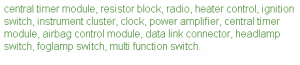 Fuse Panel Layout Diagram Parts: instrument cluster, clock, power amplifier, central timer module, airbag control module, data link connector, headlamp switch, foglamp switch, multi function switch, central timer module, resistor block, radio, heater control, ignition switch,
