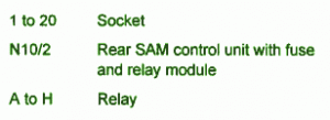 2005 Mercedes-Benz C-Class C240 Luxury Sedan Fuse Box Diagram 2005 Mercedes-Benz C-Class C240 Luxury Sedan Fuse Box Diagram 2005 Mercedes-Benz C-Class C240 Luxury Sedan Fuse Box Map Fuse Panel Layout Diagram Parts: socket, fuse and relay module, rear SAM control unit, relay.